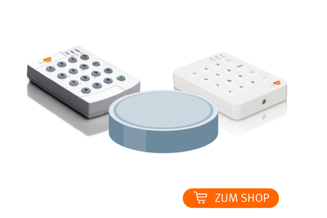 7 Sekunden lang gedrückt, bis Sie einen Piepton von der Alarmzentrale hören. Der Status-LED blinkt jetzt grün. - Drücken Sie die Taste eines Zubehörs.