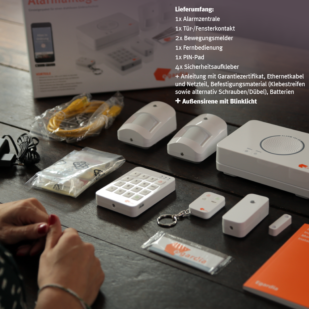 VORTEILSPAKET mit Egardia Alarmanlage inklusive Außensirene mit Blinklicht als Komplett-Alarmsystem.